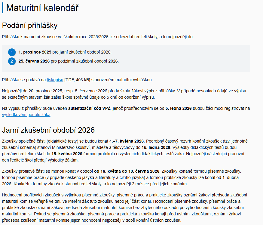 - závěrečné zkoušky (opravné a náhradní termíny): 3. AA, 3. AB, 3. C, 3. E, 3. K, 3. R, 3. AE, 3. N, 3. ZA a 3. ZB + příslušné obory studia vzdělávání dospělých. Informace a přihlášky v dolní části stránky.
