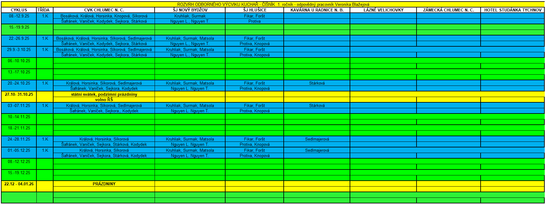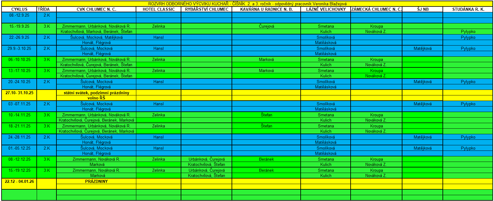 2. a 3. ročník Kuchař - číšník