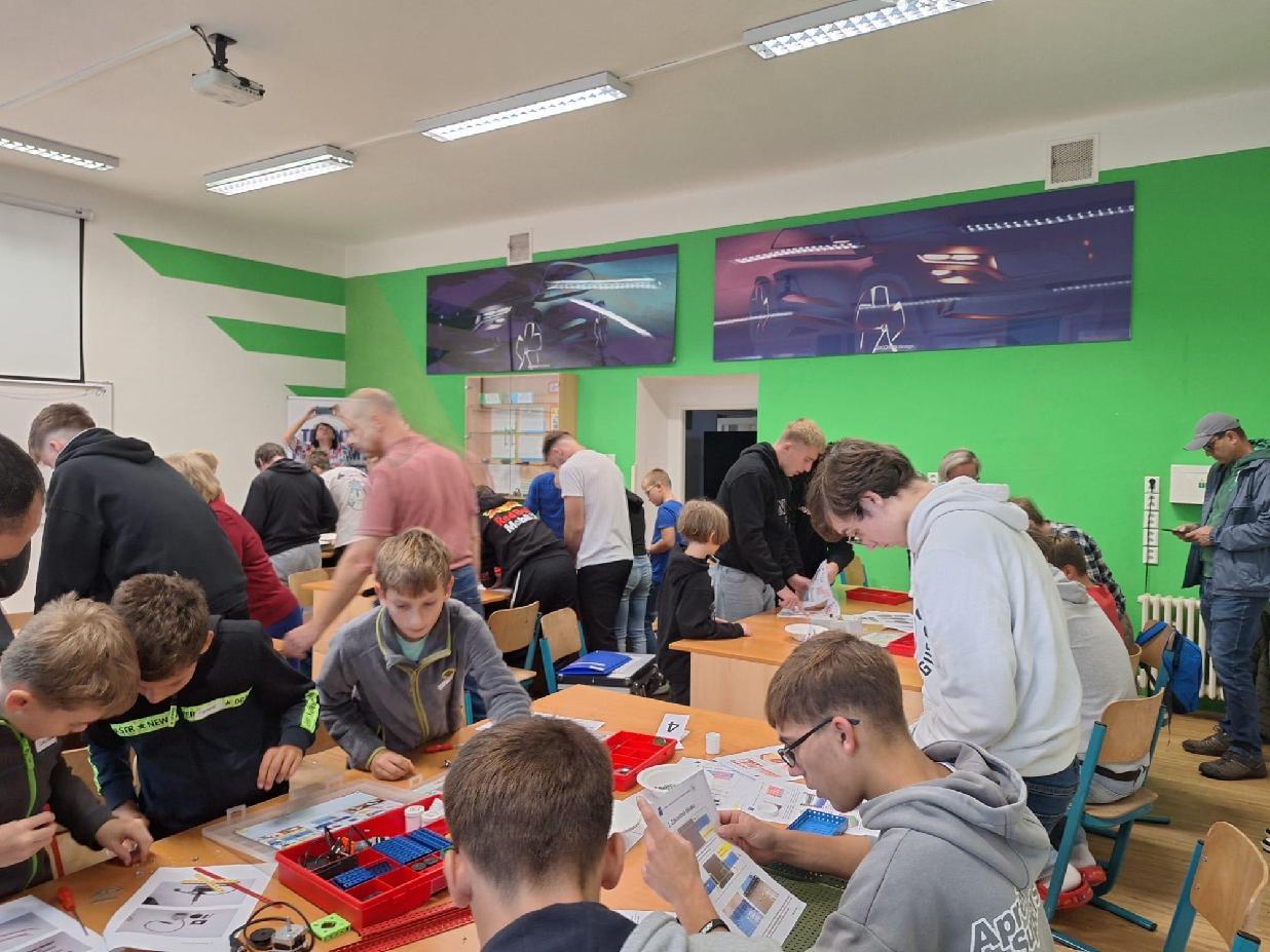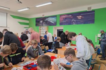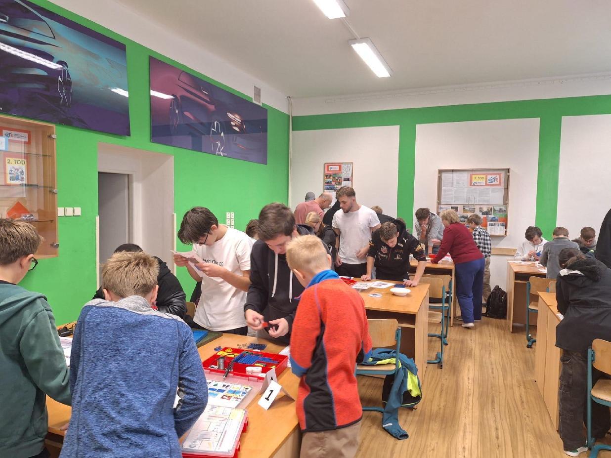V rámci spolupráce s Krajskou hospodářskou komorou jsme opět uspořádali na naší škole soutěž ve stavění modelu z polytechnické stavebnice MERKUR. Soutěž byla zaměřena na technickou tvorbu a rozvoj jemné motoriky. Šestičlenné týmy tvořily vždy 3 studenti 2. ročníku (obor Dopravní prostředky) a 3 žáci základních škol z blízkého okolí (ZŠ Klicperova Nový Bydžov, ZŠ Karla IV. Nový Bydžov, ZŠ Chlumec nad Cidlinou, ZŠ Smidary a ZŠ Hlušice).