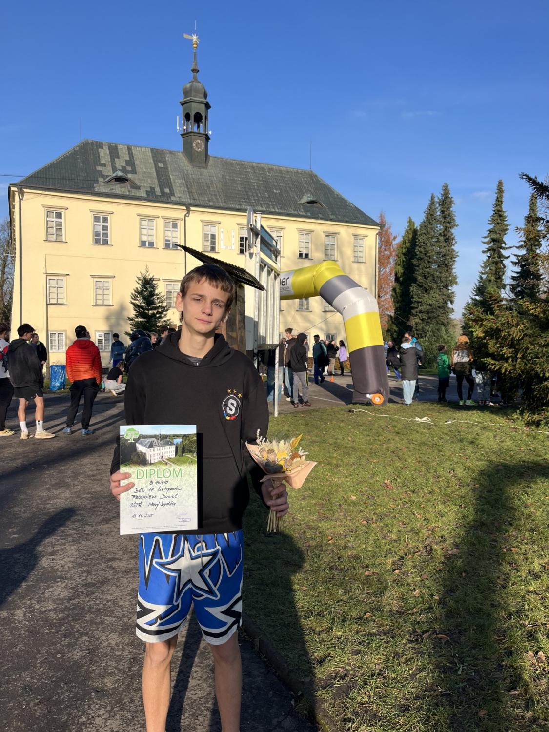 Daniel zaběhl celý závod ve skvělém tempu, po celou dobu se držel v popředí a v závěru zabojoval o umístění na stupních vítězů. Jeho výkon je zaslouženou odměnou za poctivý trénink a příkladnou reprezentaci školy.