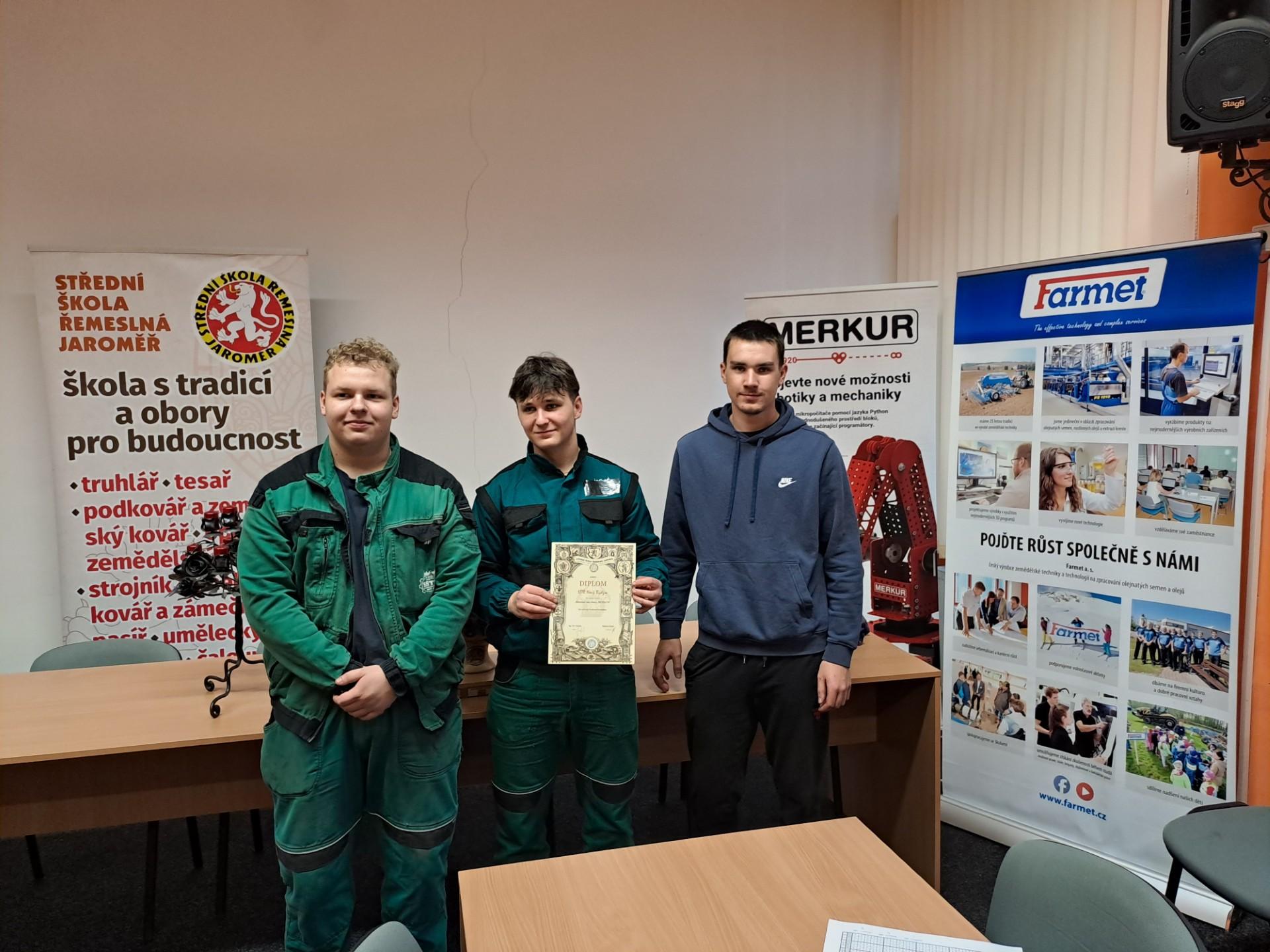 Konal se třetí ročník soutěže pro opraváře zemědělských strojů v Jaroměři. Soutěže se zúčastnily Střední škola řemeslná Jaroměř, Zemědělská akademie a Gymnázium Hořice a také naše SŠTŘ Nový Bydžov. Na soutěžící čekalo před odbornou porotou celkem pět disciplín - vědomostní test, pilování, svařování plamenem, kování, výměna kola a seřízení vůlí ventilů na traktoru.