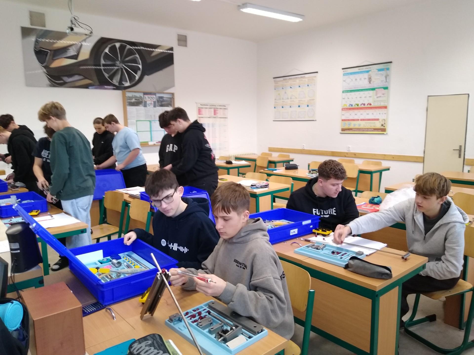 V učebně přírodovědných a technických předmětů se žáci 1. ročníku vzdělávacího programu Technik a operátor silniční dopravy věnují praktickým fyzikálním experimentům, které doplňují probíranou látku a pomáhají lépe pochopit souvislosti.