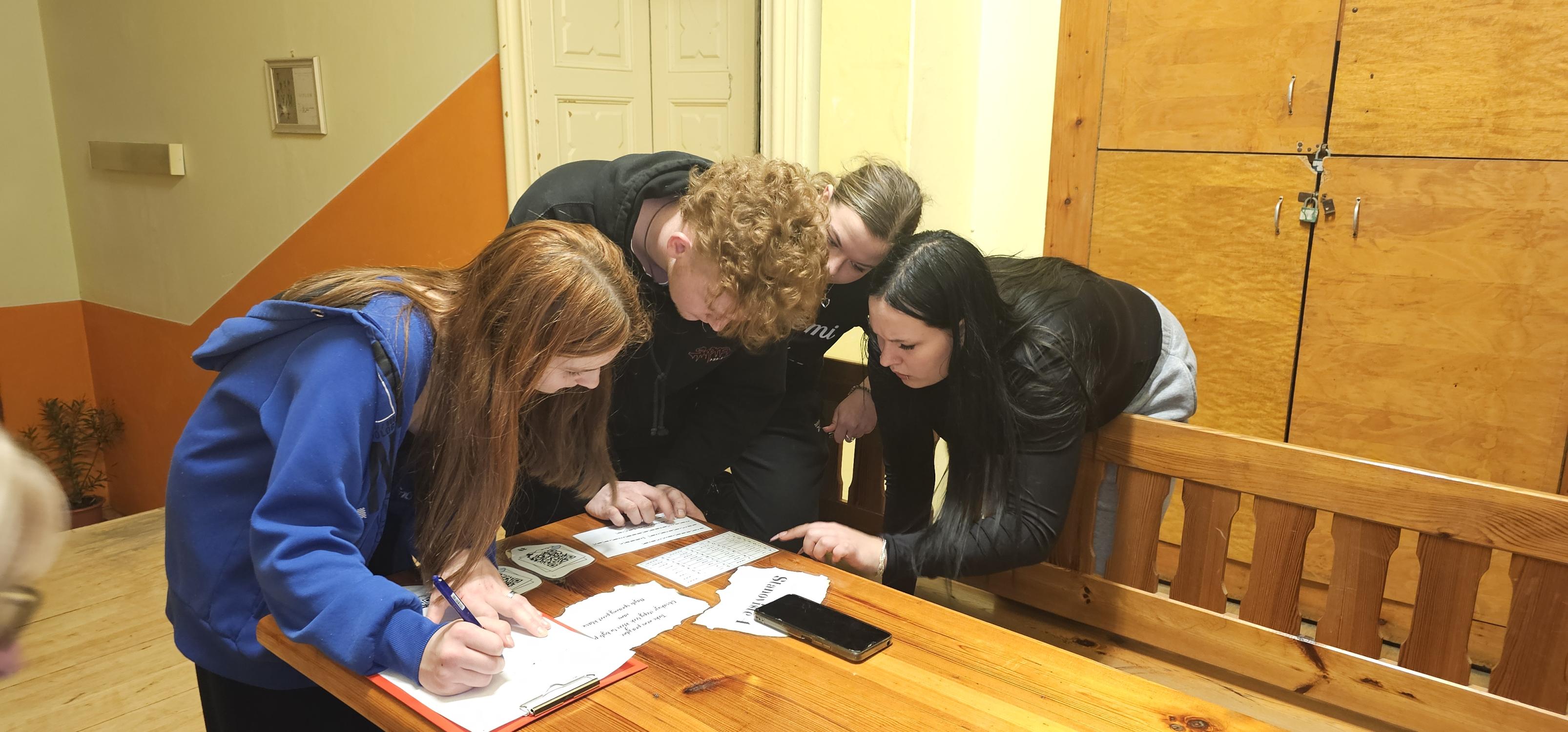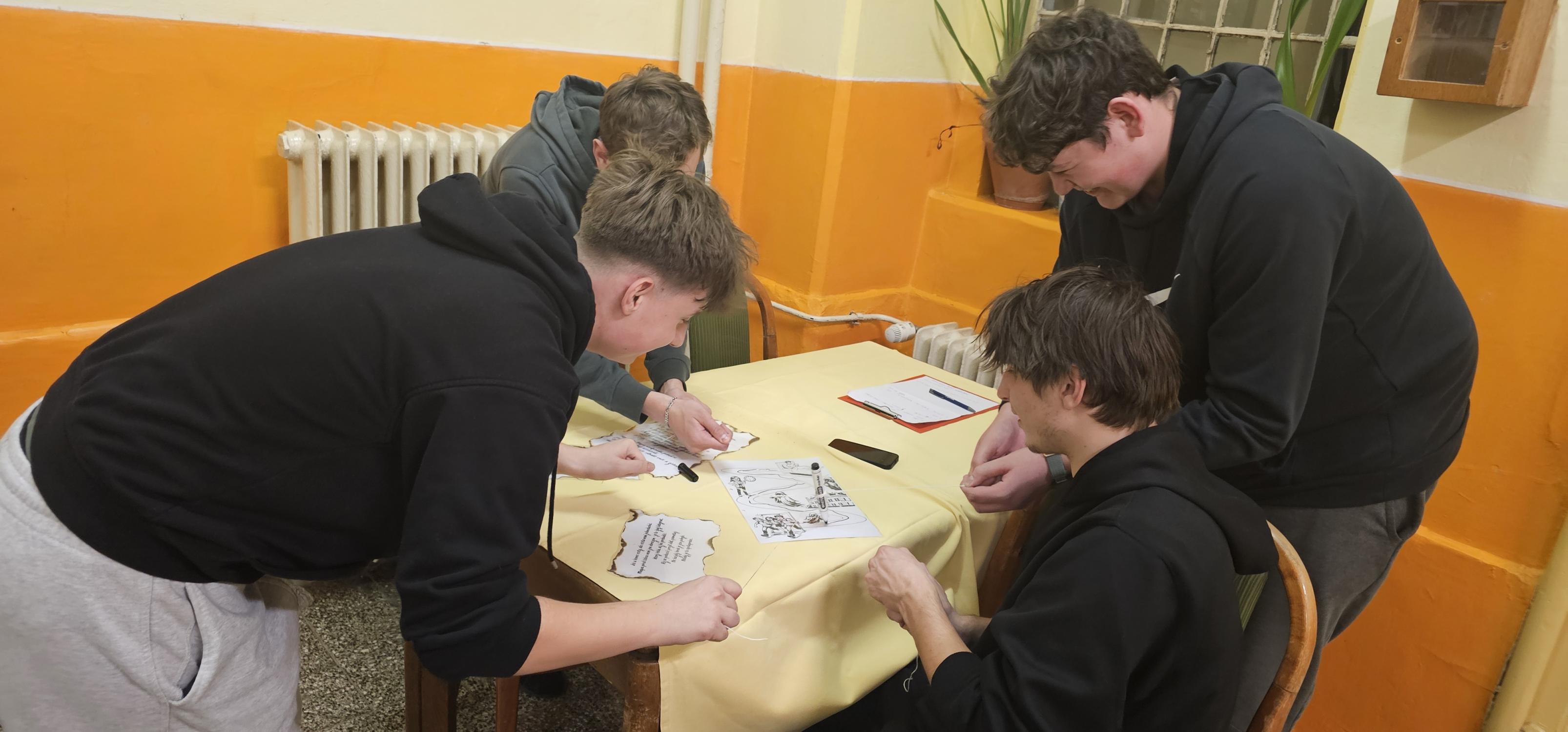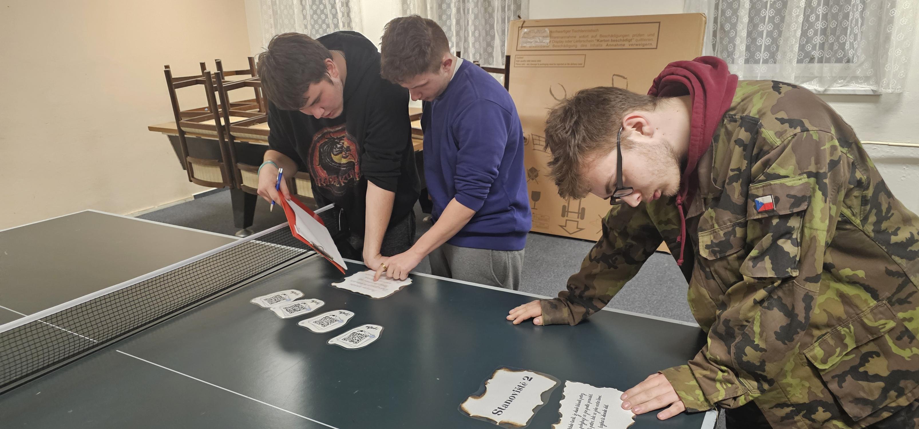 Do hry se zapojilo 20 žáků rozdělených do 5 týmů, které postupně procházely 8 stanovišť rozmístěných po celém internátu. Na každém místě na ně čekal jiný úkol – šifry, logické hádanky, číselné řady i skládání mapy. Správné řešení vždy odhalilo kód k QR odkazu, který tým posunul dál internátem a zároveň blíž k odhalení výsledné věty.