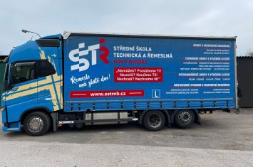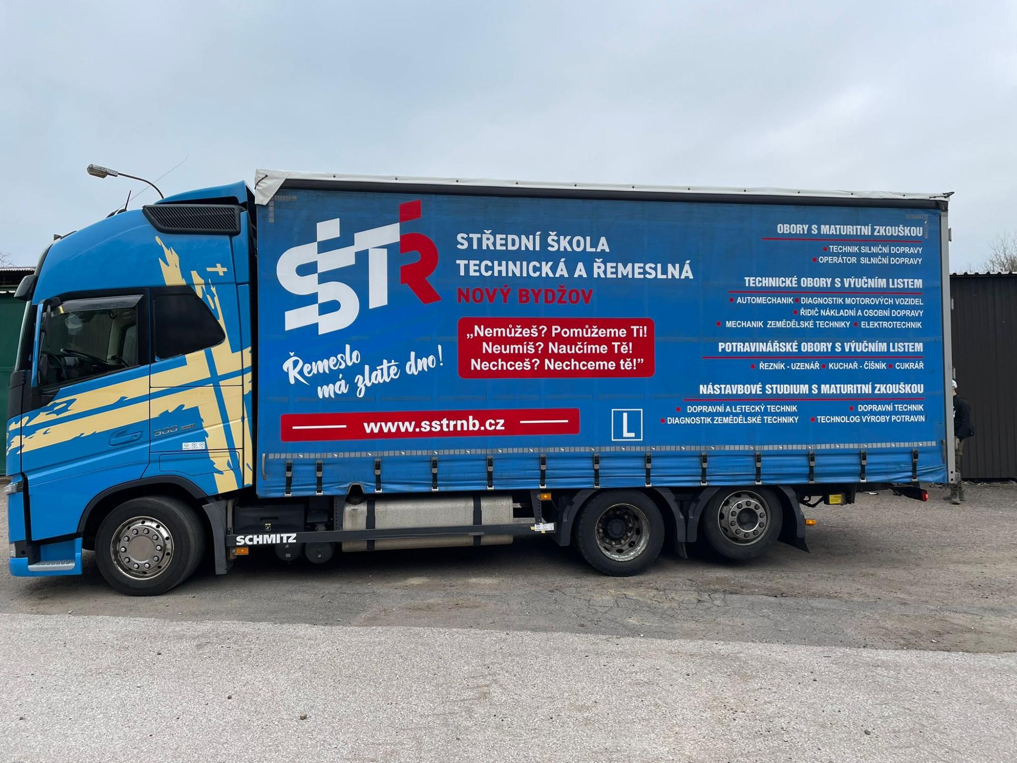 Naše škola SŠTŘ se může pochlubit novinkou, která určitě nezůstane bez povšimnutí. Nedávno jsme totiž nechali vytvořit zcela nové reklamní polepy na nákladní automobil, který škola využívá při praktických jízdách autoškoly a dalších akcích.