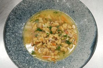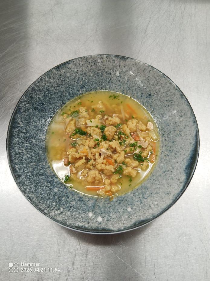 Následoval bažantí vývar se slovenskou zavářkou a zeleninou julienne, kde byl kladen důraz na čistotu chutí, správné technologické postupy a estetiku servisu.
