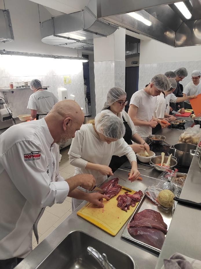 Žáci třetího ročníku studijního oboru Kuchař–číšník se ve spolupráci s odborníky z Banquet Teamu aktivně zapojili do přípravy na nadcházející závěrečné zkoušky. Praktický seminář byl zaměřen na sestavení a realizaci zvěřinového menu, které patří mezi náročné, ale zároveň velmi atraktivní kapitoly gastronomického vzdělávání.