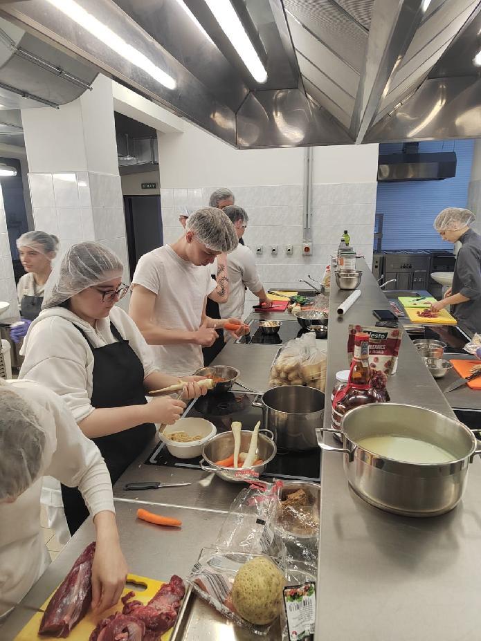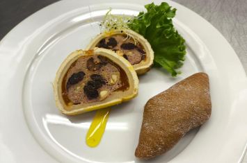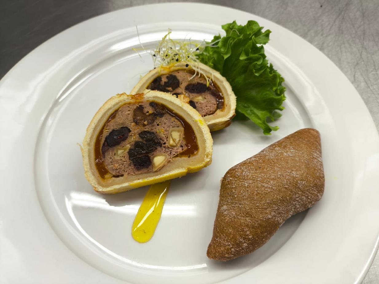 Úvodem si žáci vyzkoušeli přípravu zvěřinové paštiky se sušenými brusinkami, švestkou a mandlemi, podávané v křehkém máslovém těstě. Pokrm byl doplněn bílou pečenou bagetkou s bylinkami, která chuťový zážitek příjemně podtrhla.